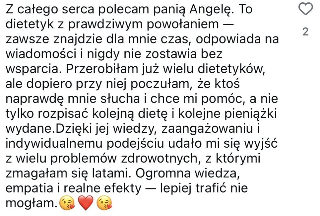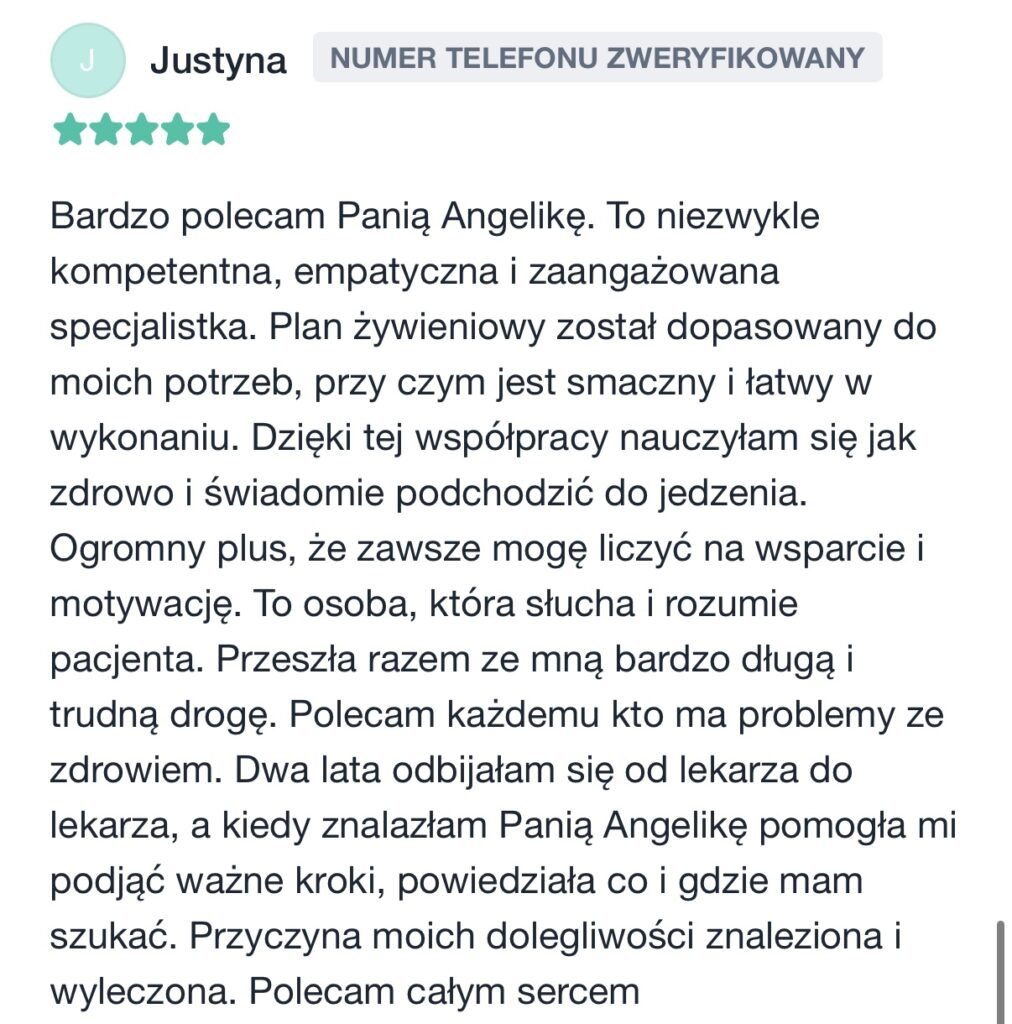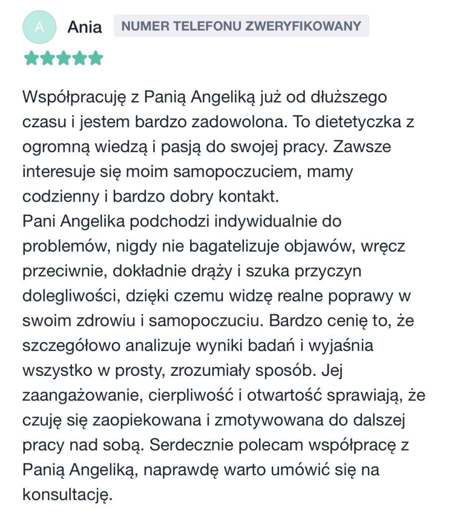 🌿Zyskasz pełne wsparcie i poczucie bezpieczeństwa – przeprowadzę Cię krok po kroku przez cały okres dietoterapii, działania dostosujemy do Twoich aktualnych możliwości i potrzeb, bez narzucania sztywnych zasad.